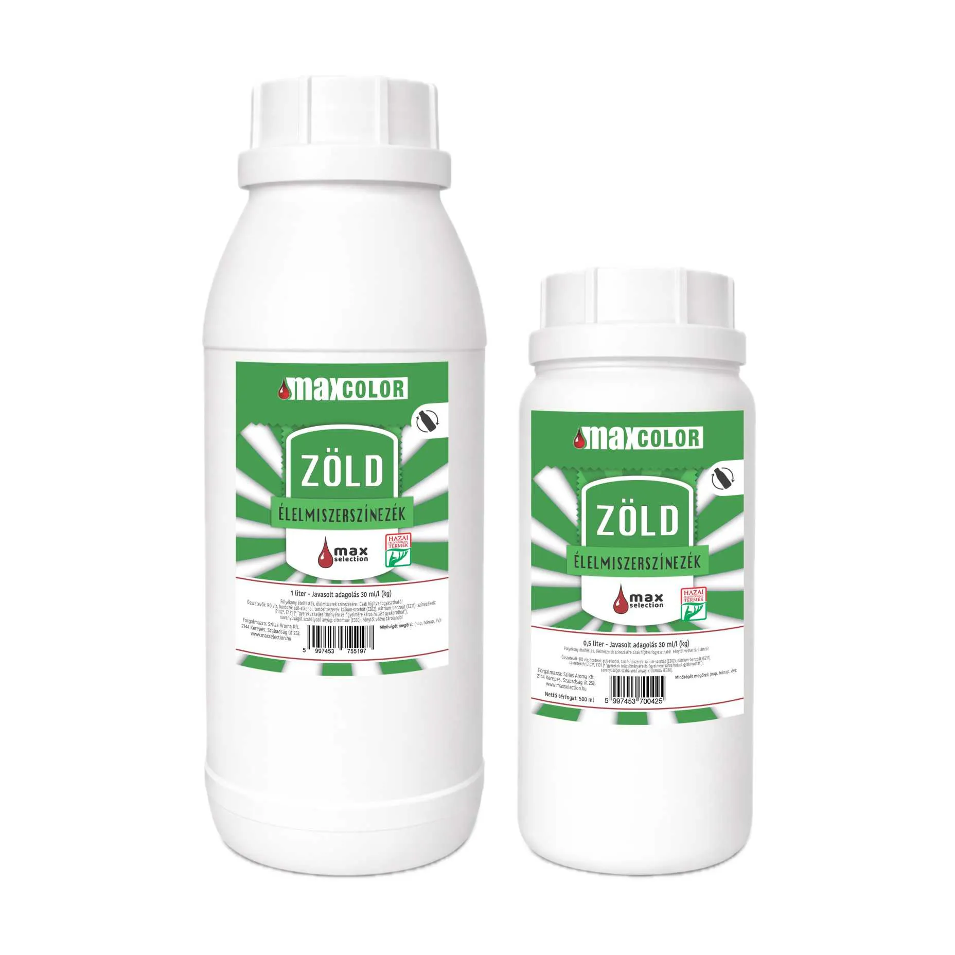 Zöld élelmiszer színezék professzionális HoReCa kiszerelésben. 0,5 és 1 literes változatban.